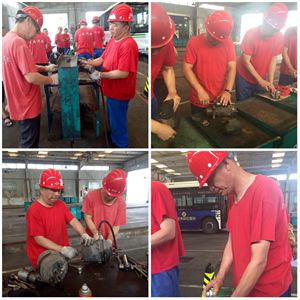 參加此次技術大比武的人員很多都是有著三十年維修經(jīng)驗的老師傅,平均年齡超過了55歲。雖已不再年輕,但他們手上的功夫卻更顯純熟。三十分鐘的比賽時間里,汗水順著臉頰滴落,卻沒有人去伸手擦拭,任憑汗水打透紅色的衣衫,他們用忘我的工作精神和積極的工作態(tài)度為年輕人樹立正確的榜樣,做到真正的傳、幫、帶。也只有這樣才能帶出好徒弟,為公司帶出真正需要的技術人員,公司才能保障良性持續(xù)健康的發(fā)展。