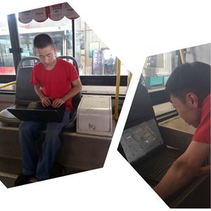 此次技術比武中,有兩位年輕的技術骨干,薄海東就是其中一個。他個頭兒不高卻能發(fā)揮優(yōu)勢,在需要鉆車底、大個子進不去的地方他都積極向前。而且骨子里也有一股倔強勁兒,他不但各項修理技術手到擒來而且用電腦查車輛問題也是一把好手,綜合能力突出,體現(xiàn)了新一代公交修理人的風采。
