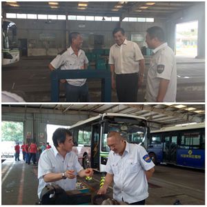 2018年7月5日上午,公交一公司在風井樞紐修理車間開展了一場"安全生產(chǎn)、技術、技能大比武"活動。比賽項目包括:電腦檢測排故障、清洗節(jié)氣門、組拆修發(fā)動機,更換調(diào)節(jié)碳刷等??偣竟飨鯇W軍、副主席石云龍和技術部檢驗人員來到現(xiàn)場與一公司經(jīng)理王國利等管理人員車間全體維修人員進行此次活動的經(jīng)驗交流。