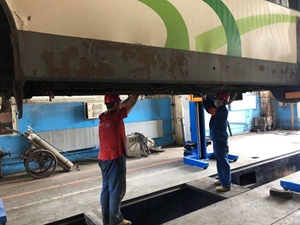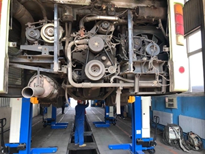 隨著新車型的疊新?lián)Q代,傳統(tǒng)的地溝舉升已不能滿足新車型的維保需求,為更安全,便捷地進(jìn)行車輛各項(xiàng)維保工作,總公司在資金緊張情況下,籌措資金,為修理公司購(gòu)置4臺(tái)充電移動(dòng)式重卡舉升機(jī),該移動(dòng)式重卡舉升機(jī)采用無線信號(hào)連接,蓄電池供電,液壓系統(tǒng)平穩(wěn)安全舉升,不需要固定工位使用,操作人員直立地面維修,操作便捷。