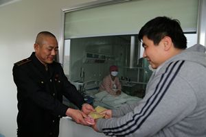 帶著一份祝福,一份愛心,320日下午,唐山公交二公司職工來到華北理工附屬醫(yī)院血液科,為勇于救母的九歲小女孩的白血病母親劉玲送來了1200多元的捐款。