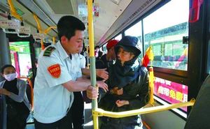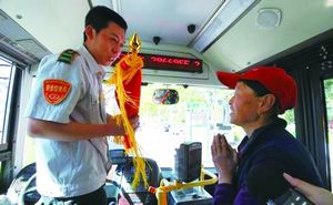 5月5日,趙淑榮來到文化路旁的28路公交車站點,親手將錦旗送給了車上的司機。三年多來,28路公交車司機風雨無阻,幫助趙淑榮攙扶她患有腦梗后遺癥的老伴上車、下車,安全地送他們到達目的地。“沒有他們幫助,我和丈夫真沒法出門,真的太感謝這些好心人了。”趙淑榮感激地說。