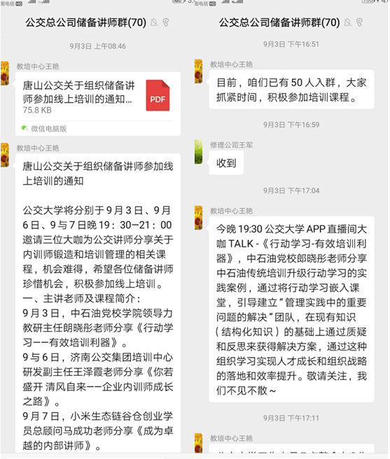 結(jié)合當(dāng)前疫情防控形勢(shì)及總公司儲(chǔ)備講師培養(yǎng)需求,總公司教培中心積極轉(zhuǎn)變工作思路,多次與公交大學(xué)及公交同行對(duì)接,經(jīng)過前期精心籌備,分別于9月3日、9月6日、9月7日晚19:30-21:00組織總公司儲(chǔ)備講師參加了公交大學(xué)關(guān)于“講師技術(shù)和講師成長”相關(guān)的三場(chǎng)免費(fèi)在線直播培訓(xùn)課程。