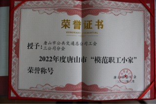 總公司工會榮獲“唐山市模范職工之家”稱號